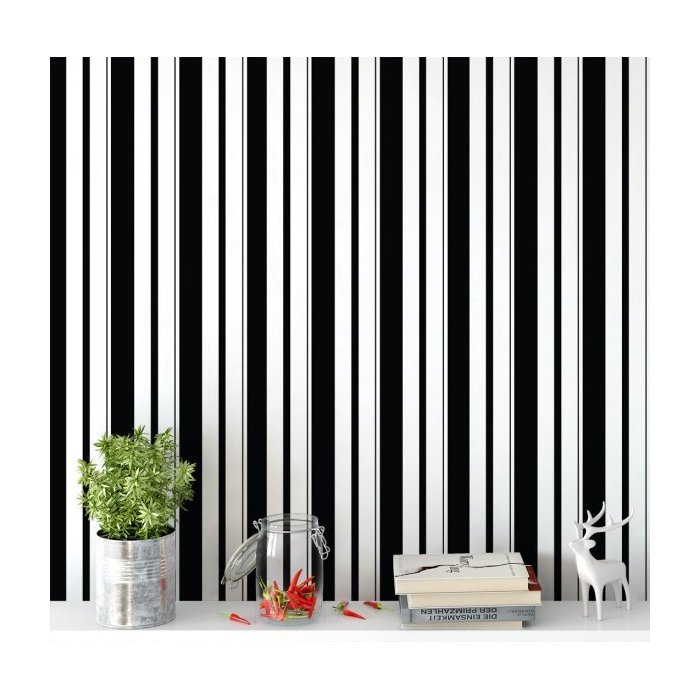 Papel De Parede Listras Nas Cores Preto E Branco 10,0m