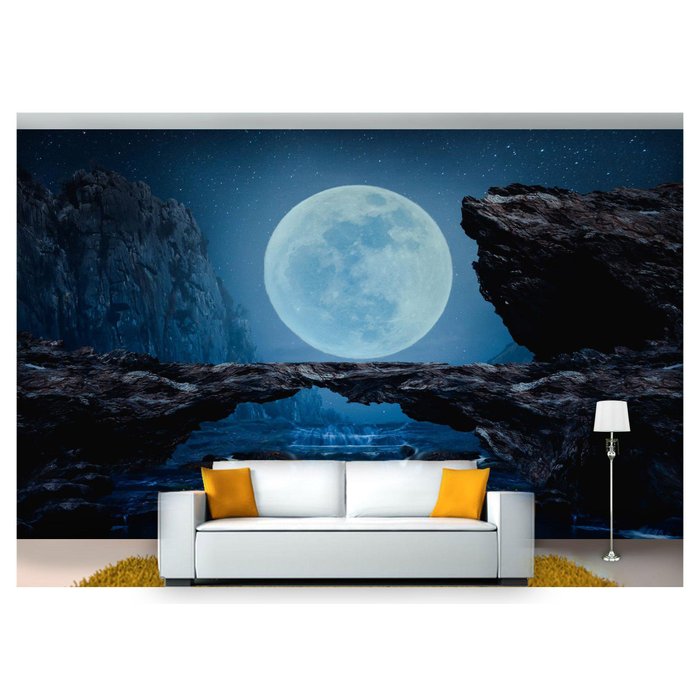 Papel De Parede Lua Cheia Noite Montanha 3D 7,50M² Nsk91