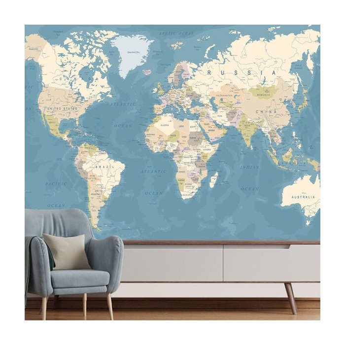 Papel de Parede Mapa Mundi Geopolítico Sala Painel - 476pcp