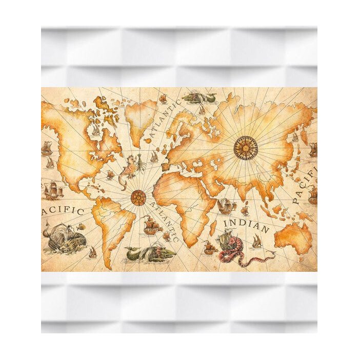 Papel de Parede Mapa Mundi Monstros do Oceano Para Sala e Escritório