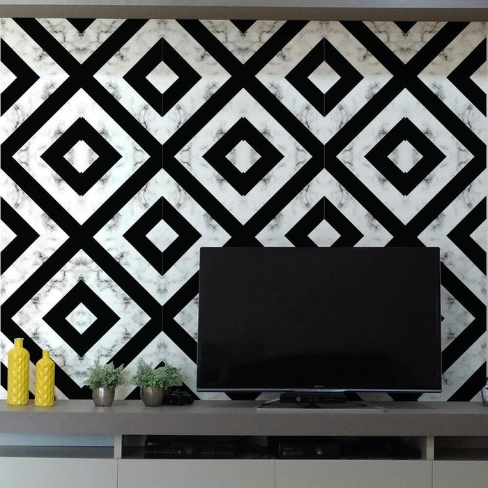 Papel de Parede Mármore Geométricos Preto e Branco 02-60x300cm