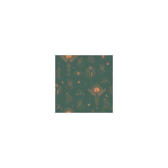 Papel de Parede místico com olhos, sol, fênix, anjo e grifo criatura mítica, objetos esotéricos e bo