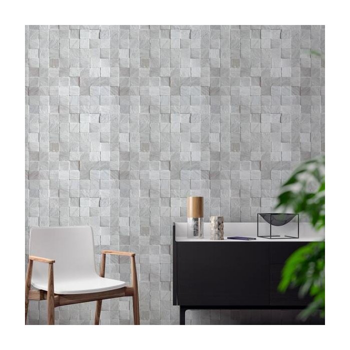 Papel de Parede Mosaico Pedras Cinza com 3 Metros