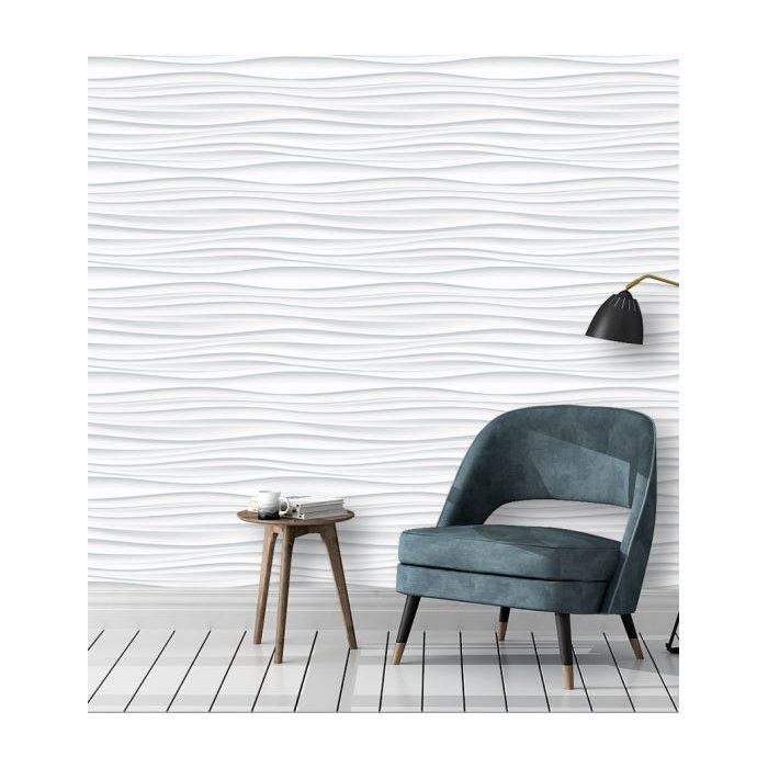 Papel de Parede Ondas Horizontais 3d tons de cinza e branco tons de cinza e branco