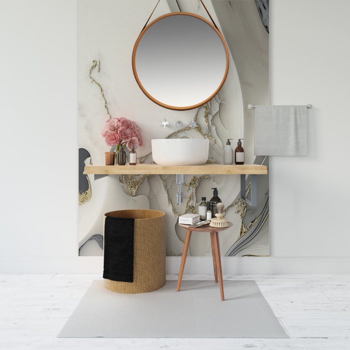 Papel de Parede Painel 3D Mármore Branco com Cinza 1,5M Revestimento Pedra Requinte Auto Colante