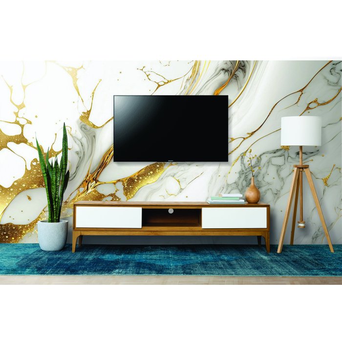 Papel de Parede Painel 3D Mármore Branco Fio Dourado 3,5M Revestimento Auto Colante Marmorizado Branco/Dourado 5