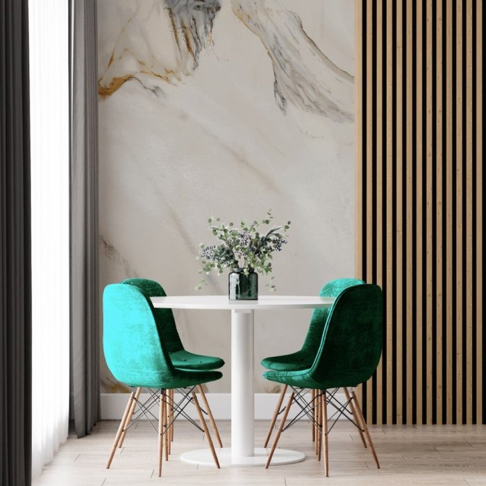 Papel de Parede Painel 3D Mármore Calacata Bege 2M Revestimento Auto Colante Brilho Marmorizado