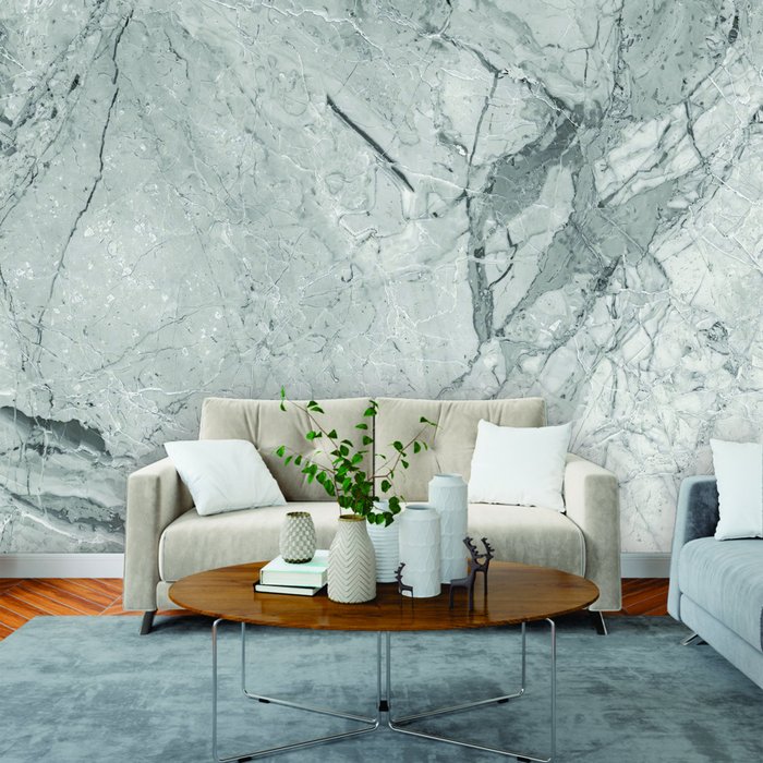 Papel de Parede Painel 3D Mármore Calacata Cinza Claro 3M Auto Colante Lavável Revestimento