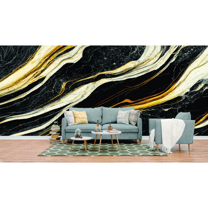 Papel de Parede Painel 3D Mármore Preto Branco Dourado 4M Revestimento Pedra Requinte Auto Colante
