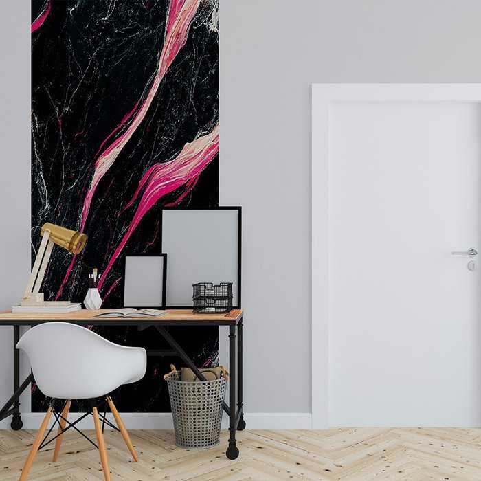 Papel de Parede Painel 3D Mármore Preto White Rosa 1M Auto Colante Lavável Revestimento Brilhoso Preto Branco Rosa 2