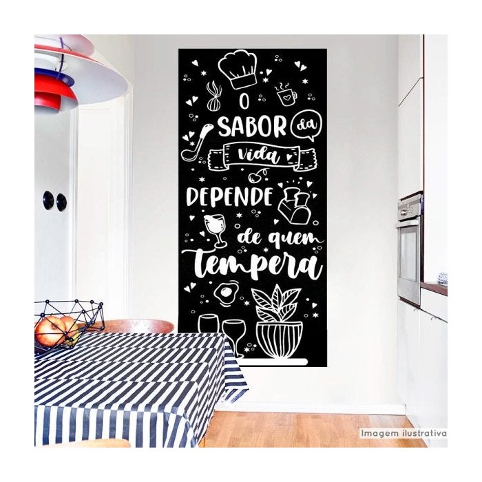 Papel de Parede Painel Frase Sabor da Vida, autocolante e lavável.