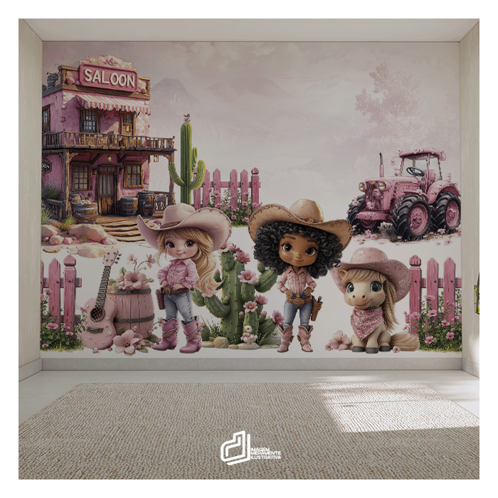 Papel de Parede Painel Velho Oeste Rosa Rosa