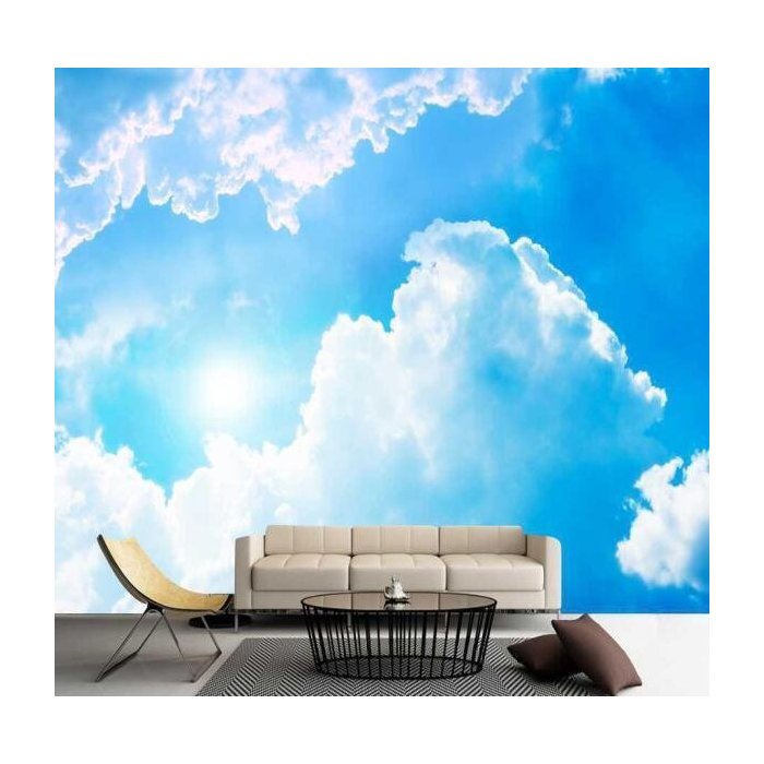 Papel De Parede Paisagem Céu Azul Nuvem Sol Raio Solar Gg868