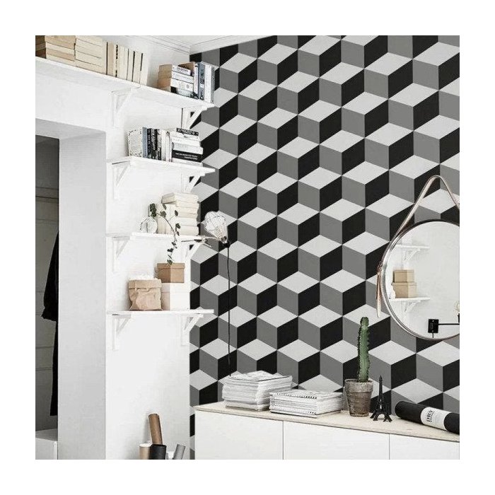 Decore sua parede com Papel de parede para cozinha cubos 3D, móvel ou eletrodoméstico, adesivo para o quarto infantil, decoração da sala, decoração do quarto, adesivo papel de parede para quarto do bebê, adesivo da sala de jantar, papel de parede cozinha, várias possibilidades de uso. Mais fácil pra instalar, pois não é necessário o uso de cola.