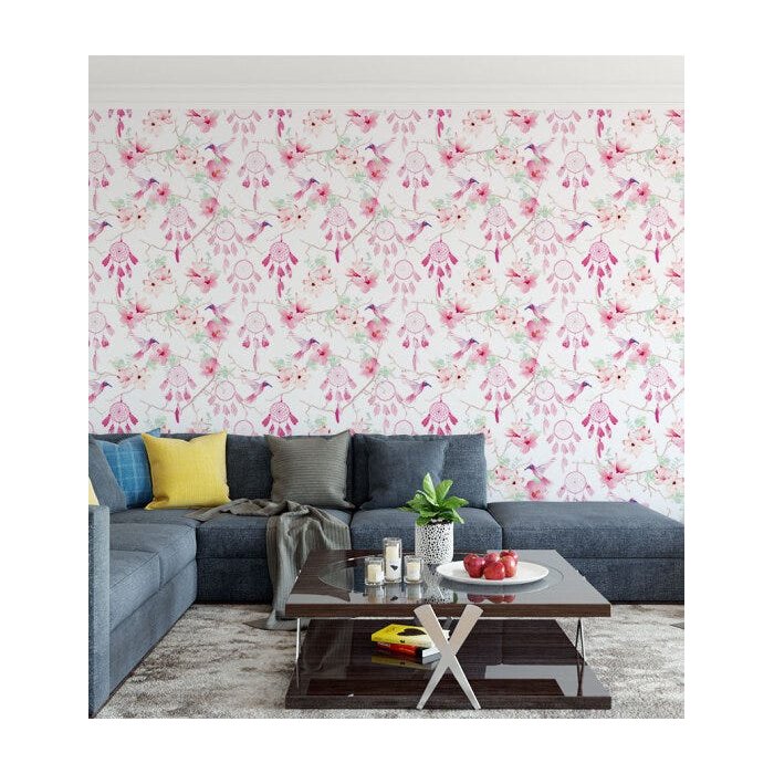 Papel De Parede Para Quarto Sala Branco Com Tons Rosa E Verde Filtro Dos Sonhos Beija Flor