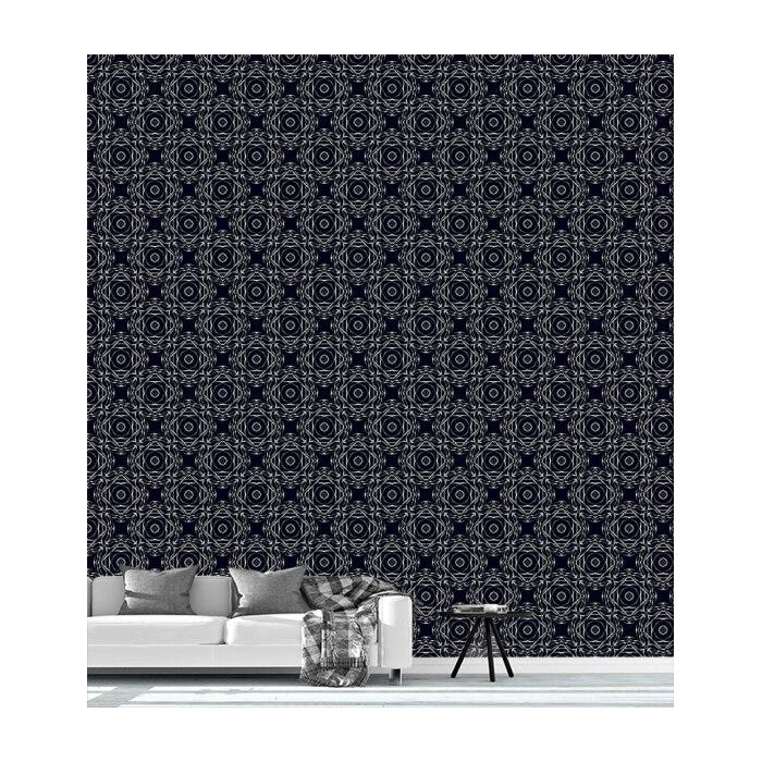 Papel De Parede Para Quarto Sala Preto Com Detalhe Branco Desenho Floral Geometrico Modelo Imperial
