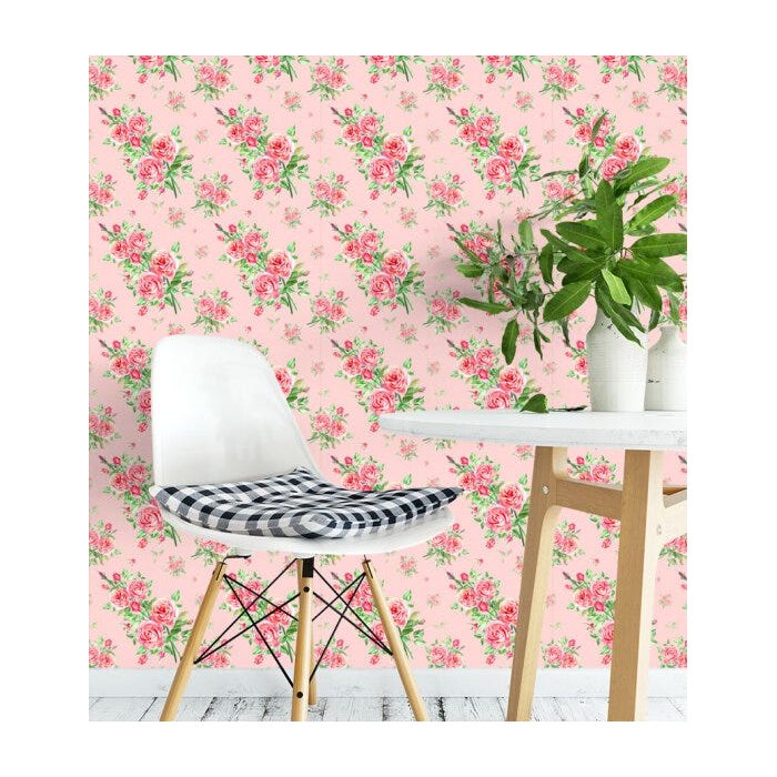Papel De Parede Para Sala Quarto Com Flores Rosa Detalhes Verdes