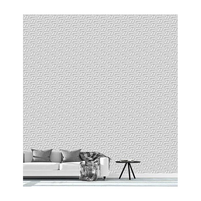 Papel De Parede Para Sala Quarto Efeito 3D Branco Com Cinza Branco Com Cinza