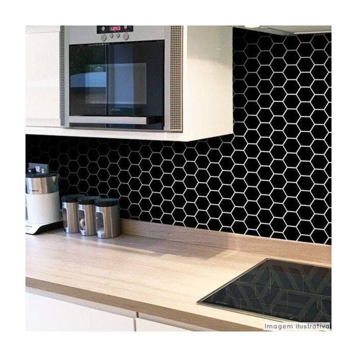 - Modelo: Papel de Parede Pastilha para cozinha modelo Colmeia Preto