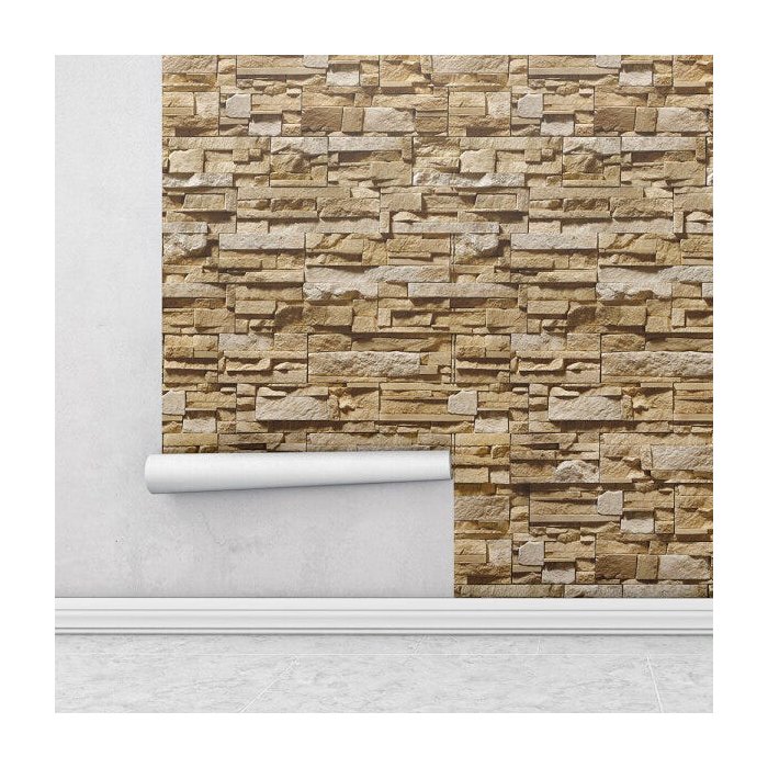Papel De Parede Pedra Canjiquinha Marrom Bege Para Sala Com Laminação
