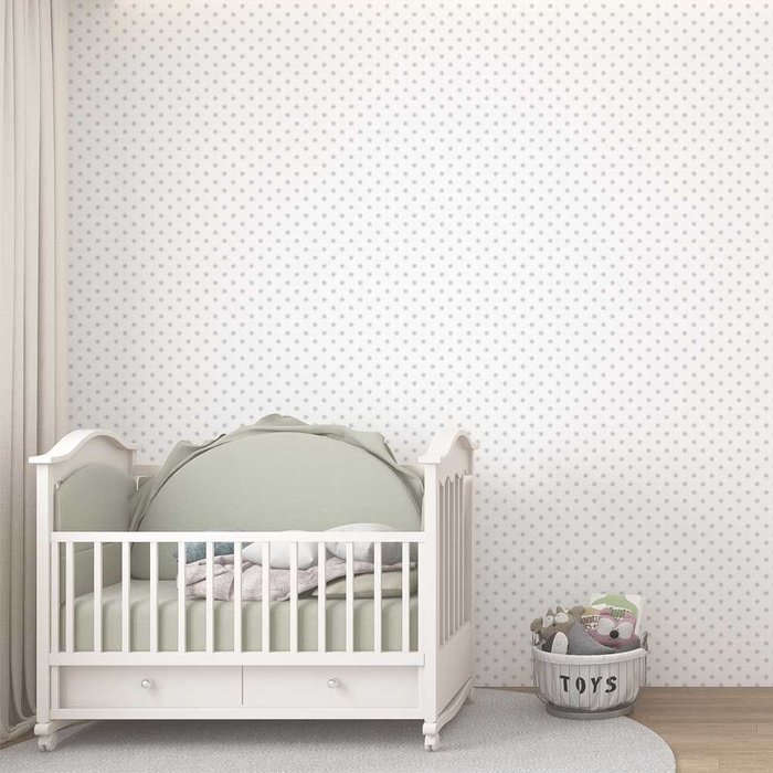 Papel de Parede Poá Suave Branco com Bolinhas Cinzas - 3,5m