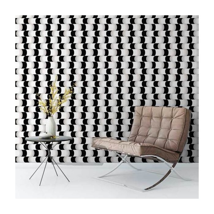 Papel De Parede Preto Branco Para Quarto Sala Com Efeito Curva Preto Branco