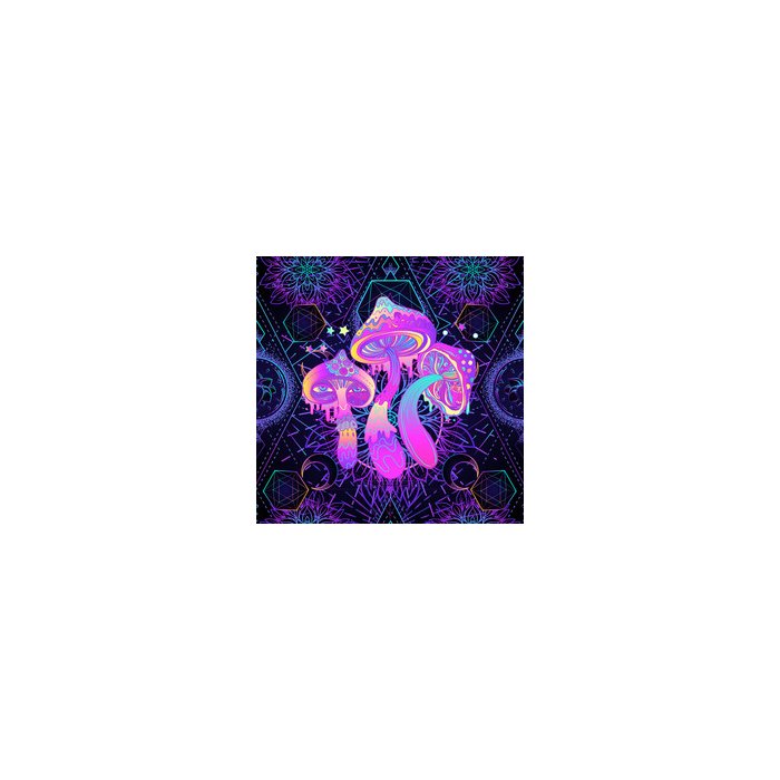 Papel de Parede psicodélico com cogumelos mágicos sobre geometria sagrada. ilustração repetitiva. co