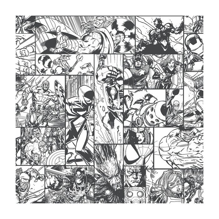 Papel de Parede Quadrinhos Marvel DY0270, com imagens de personagens Marvel em ação, destacando toda a força e atuação desses personagens. O Papel de parede DY0270 pode complementar ambientes temáticos ou mesmo criar um novo astral em um ambiente em que se procura identidade própria, mas que tem uma veia artística de comics. Tamanho (AxL): 52cm x 10m.