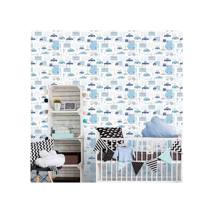 Papel De Parede Quarto Bebe Menino Carrinhos Azul Adesivo