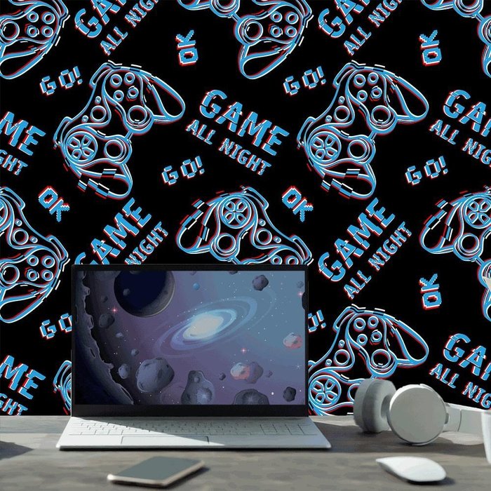 Papel de Parede Quarto Gamer Azul e Fundo Preto 3,0m