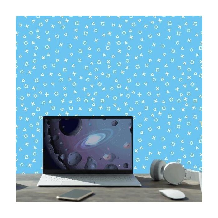 Papel De Parede Quarto Gamer Playstation Fundo Azul 3,0m Azul