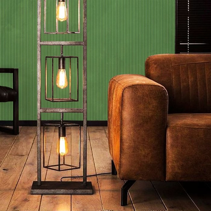 Papel de Parede Adesivo modelo Ripa de Metal Verde para sala, autocolante e lavável