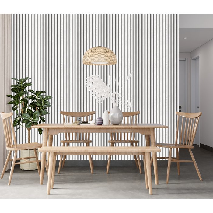 Papel de Parede Ripado Fino Textura de Madeira Branca 3m