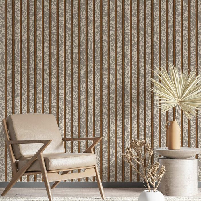 Papel de Parede Ripado Madeira Floral Azul-60x300cm
