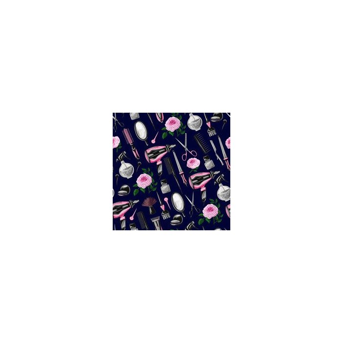 Papel de Parede Salão de Beleza com ferramentas de cabeleireiro, como secador de cabelo, pente, teso