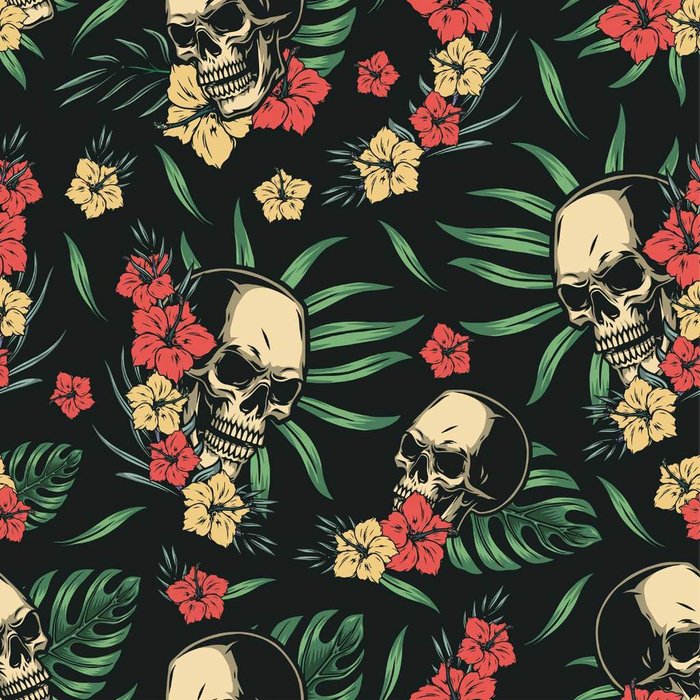 Papel de Parede Temático Caveiras Floral Florida - 1,5x0,5m
