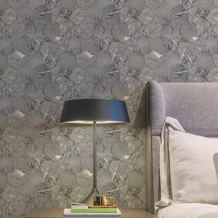 Papel de Parede Textura Mármore Cinza Hexagonal-60x300cm
