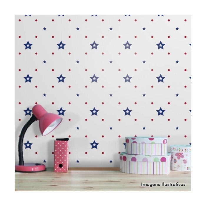 Papel de Parede Texturizado Autocolante Estrela Azul e Vermelho