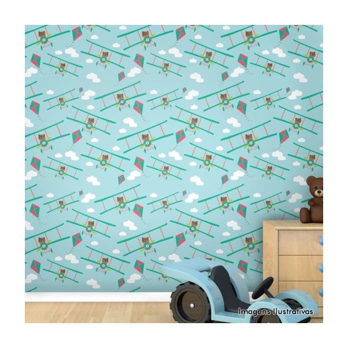 Papel de Parede Texturizado Autocolante Infantil Aviões