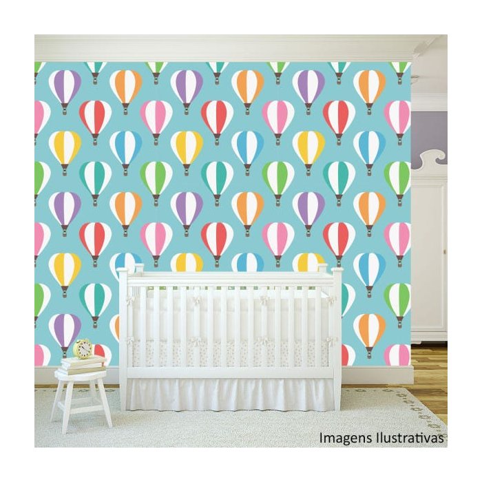 Papel de Parede Texturizado Autocolante Infantil Balões Coloridos