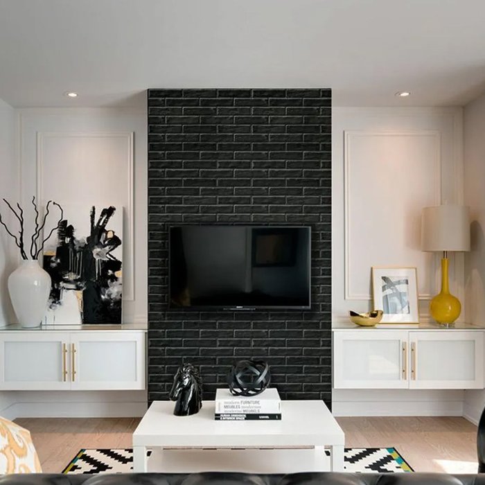 Papel de Parede Tijolo Frisado - Várias Cores Tacolado Papel de Parede Preto 0,47 X 2,60m Pop - Fund Preto