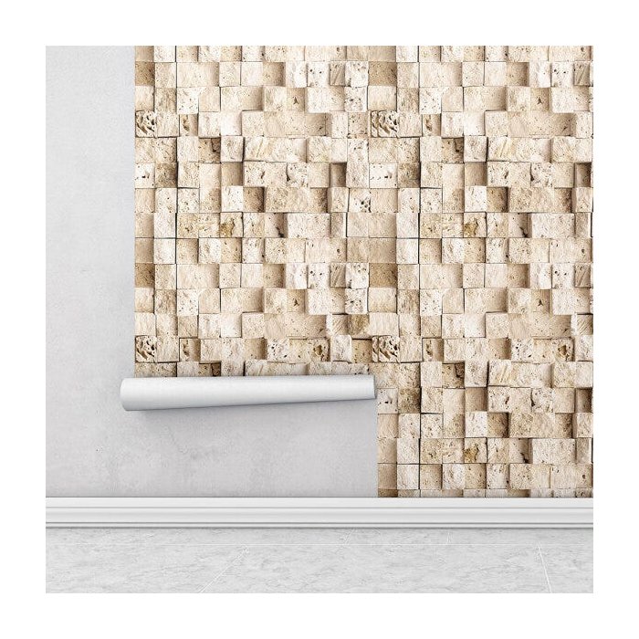 Papel de Parede Tijolo Sombras 3D em Tons de Bege Para Sala e Quarto