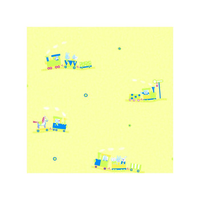 Papel de Parede Trem infantil Colorido fundo Amarelo para quarto de Menino