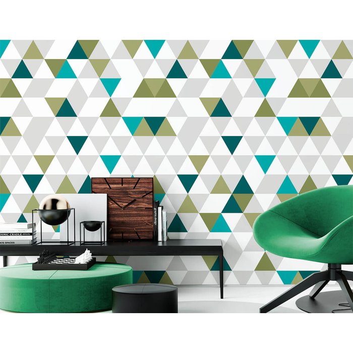 Papel de Parede Triangulo Branco, Cinza, Verde e Azul Arte Destaque 1,50 Metros
