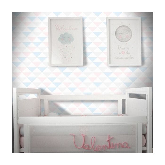 Papel de Parede Triângulo Clear - Azul, Rosa e Cinza