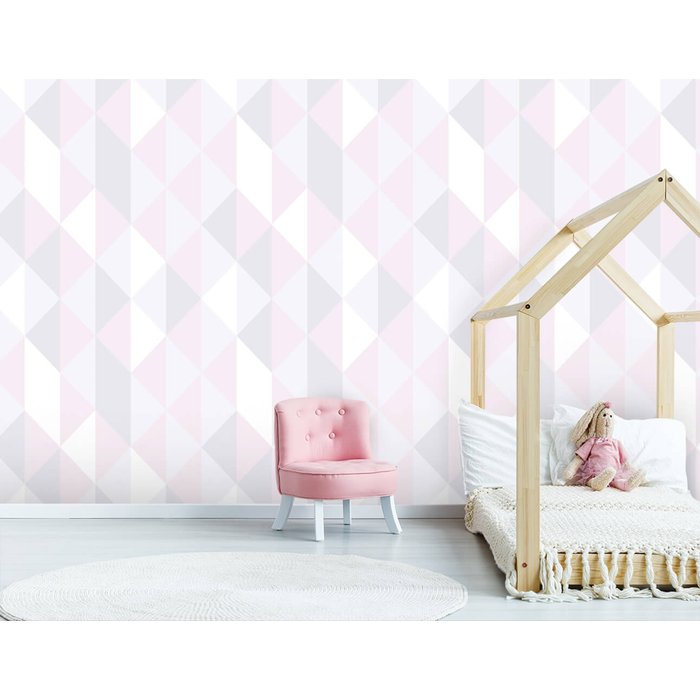 Papel de Parede Triângulos Lilás, Branco e Rosa Arte Destaque 3 Metros