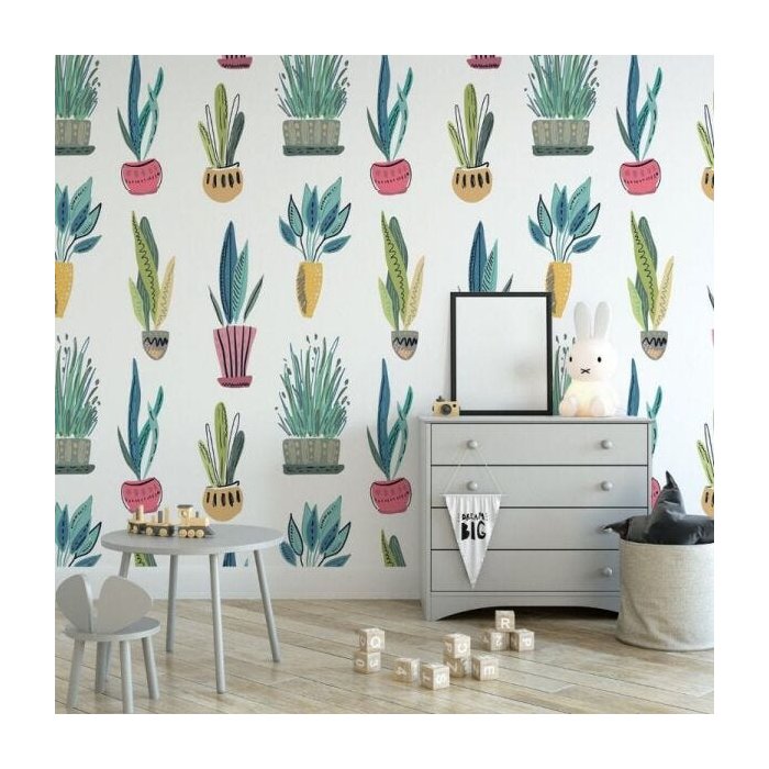 Com o Papel de Parede vasos de planta colorido em