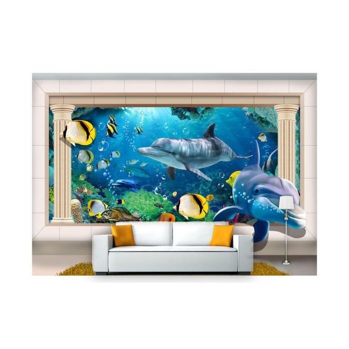 Papel de Parede Vida Marinha Golfinhos Mar 3d At66