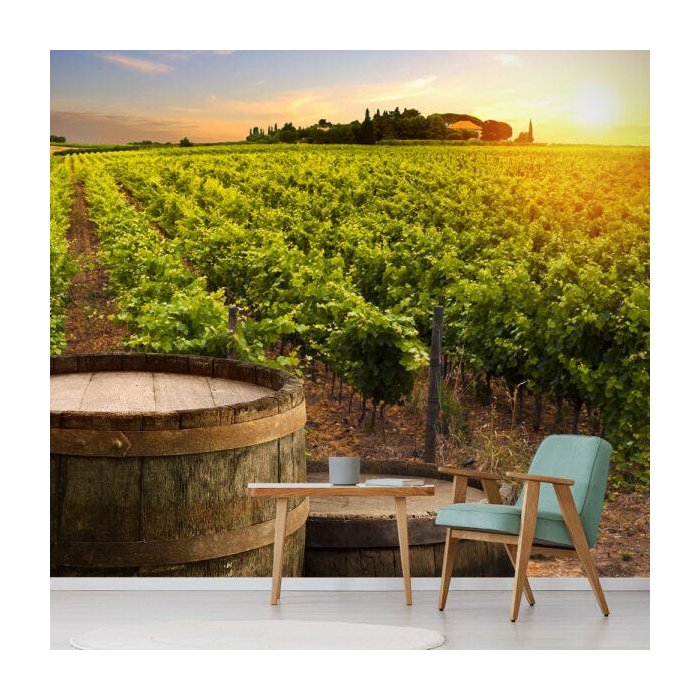 Papel de Parede Vinho Barril Vinhedo Vinícola Sala Adesivo - 219pcm