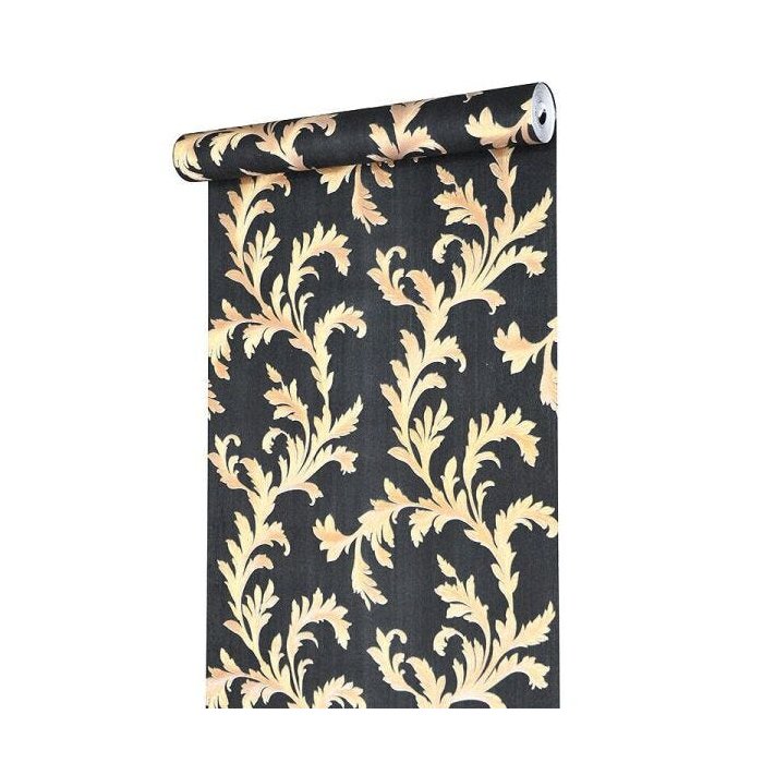 PAPEL DE PAREDE VINÍLICO IMPORTADO TEXTURA ARABESCO - PRETO | DOURADO